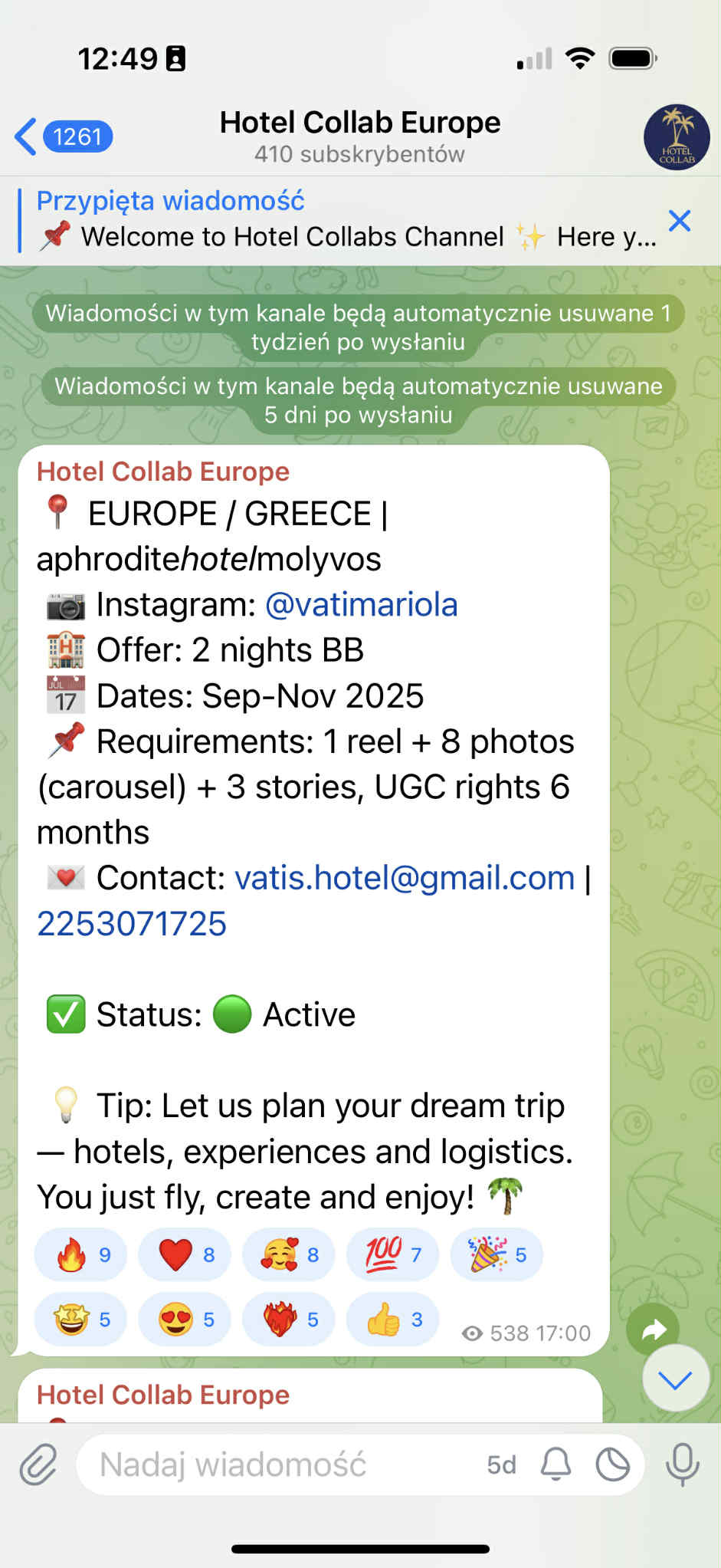 Daily hot deals (press stays/barter/paid UGC) with brief + contact.
